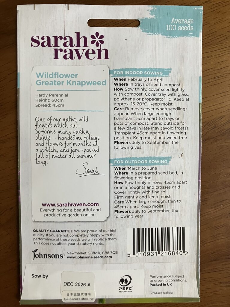 楽天市場で『Greater Knapweed』の種が売っていた。