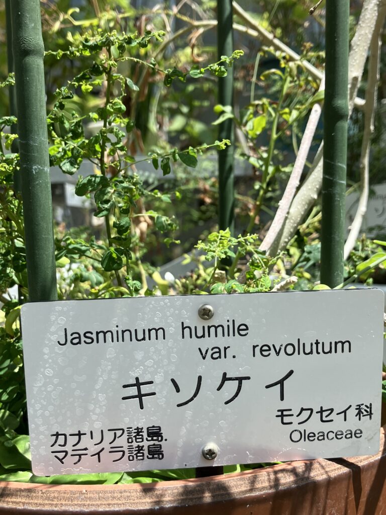 小石川植物園の温室2にて、お隣同士でソケイとオオバナソケイが居ました。