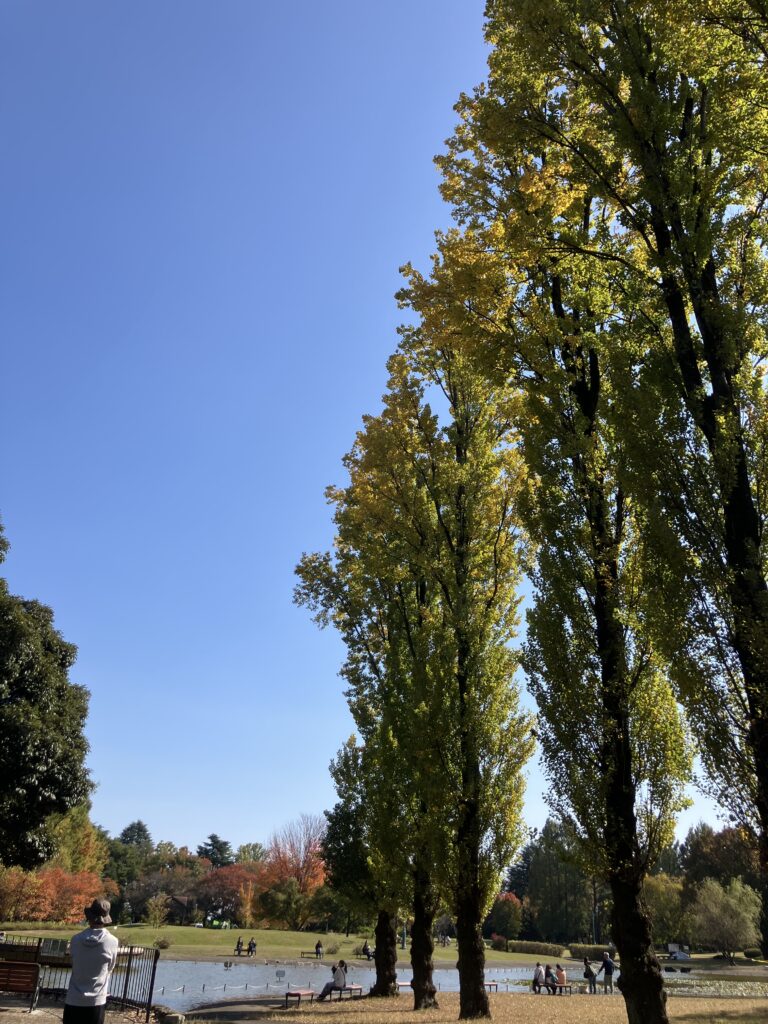 西武入間市駅から歩いて15分、彩の森入間公園の入り口でのお出迎えは、ずらりと並んだポプラたち。