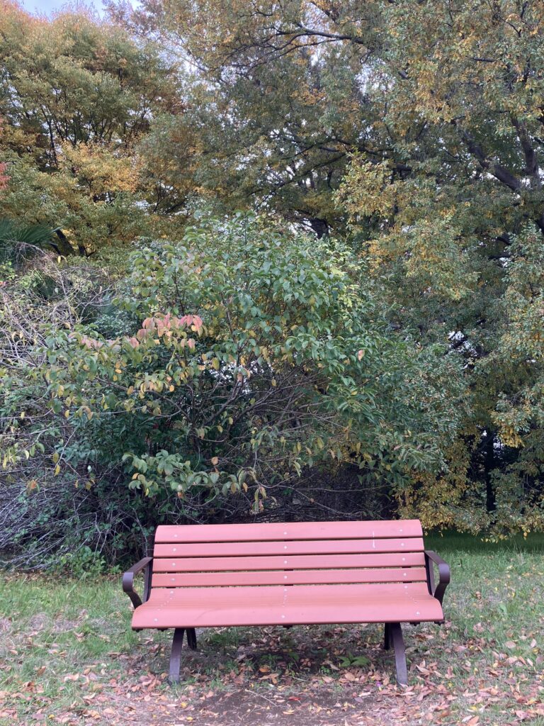 ベンチの後ろに見えるのは日本の檀のようですよ。