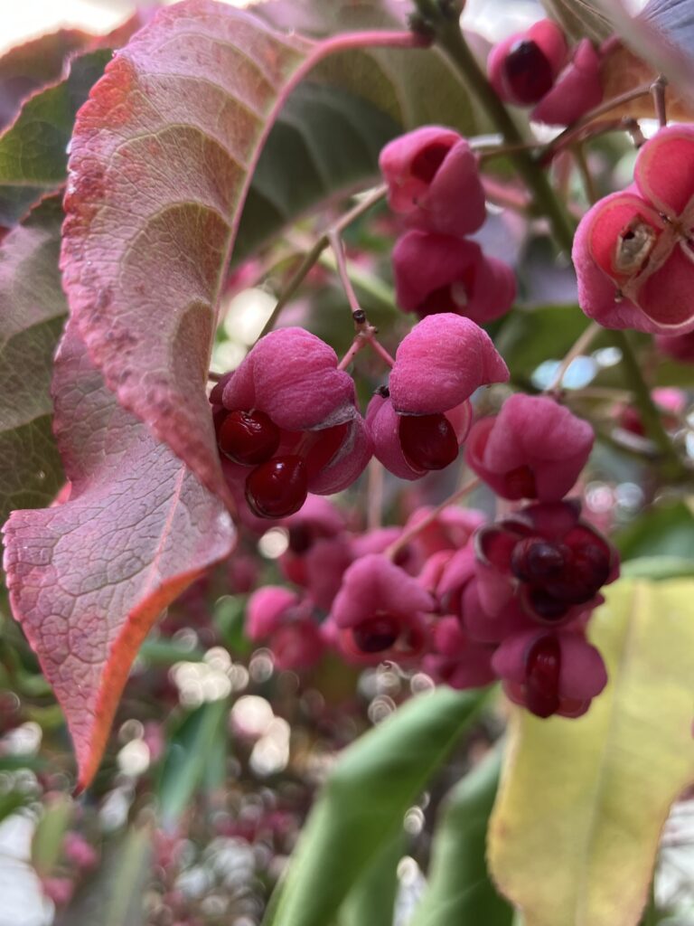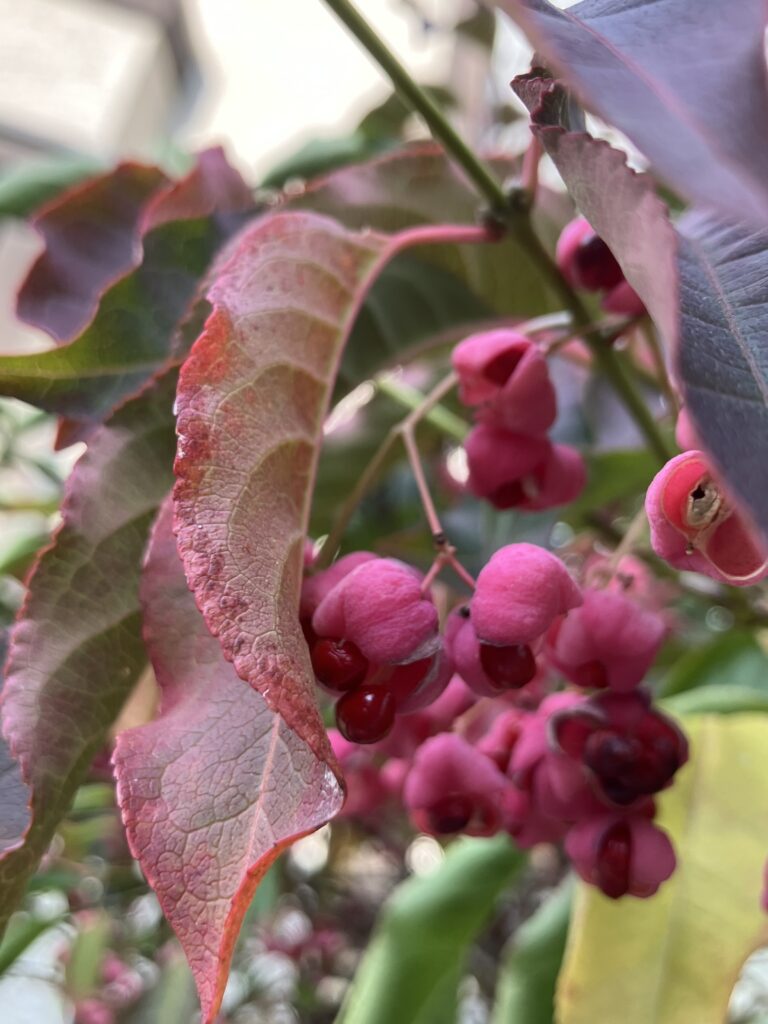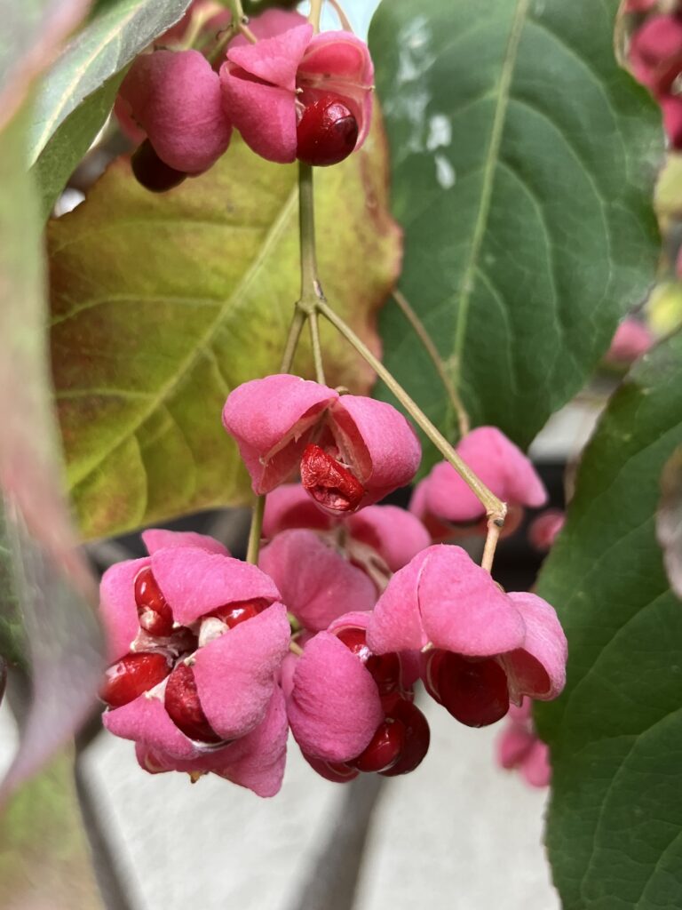 実も、日本の檀にもかなり派手なピンクのものもあったり(写真の場合は光で色が変わっ写る)で…。