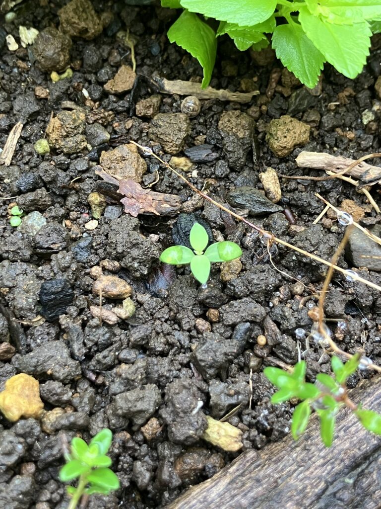 ⬆︎しかし、久しぶりの庭仕事中、育った葉っぱを触ってみると、葉には毛が生えてます。